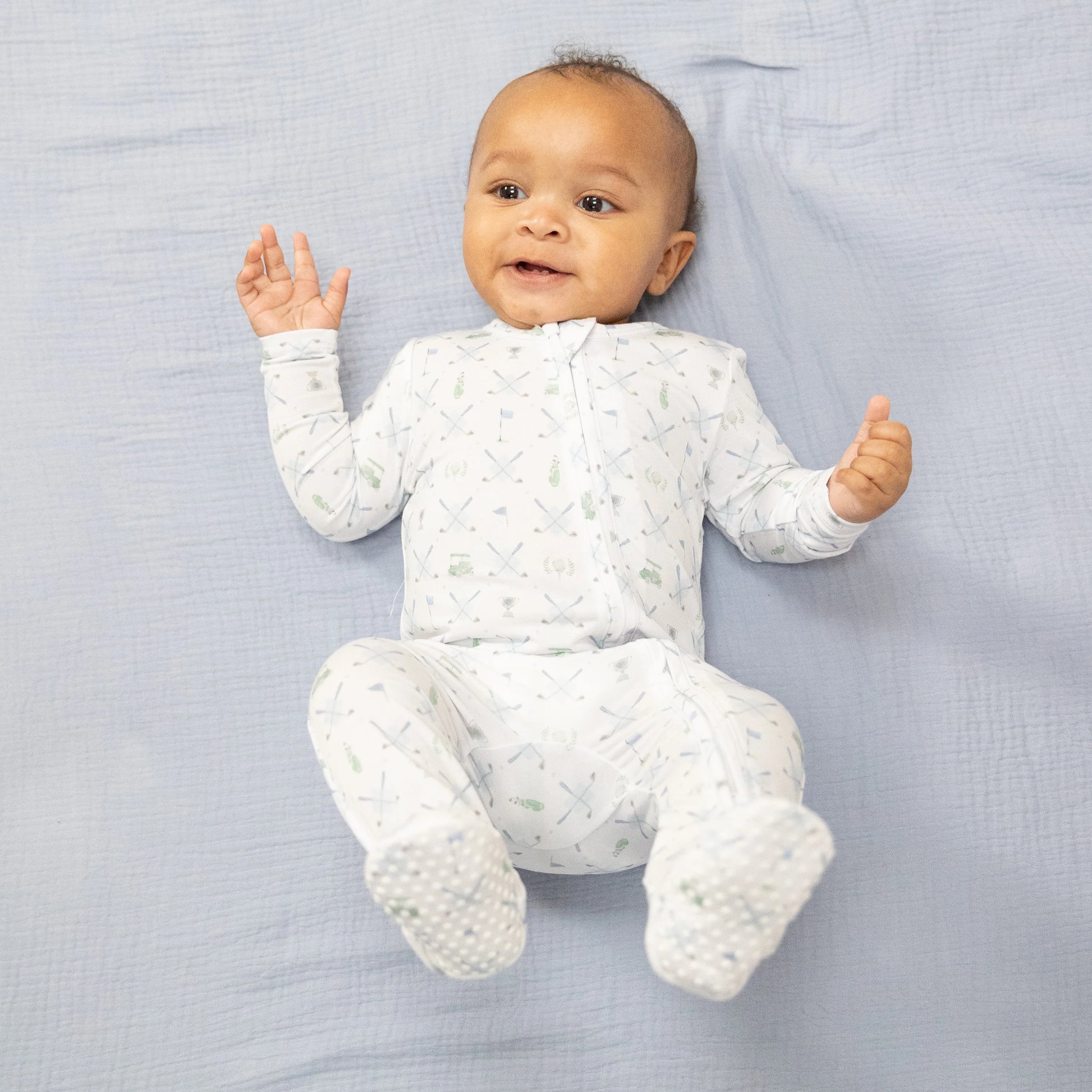 AD Zip Footie - Golf Trellis Blue