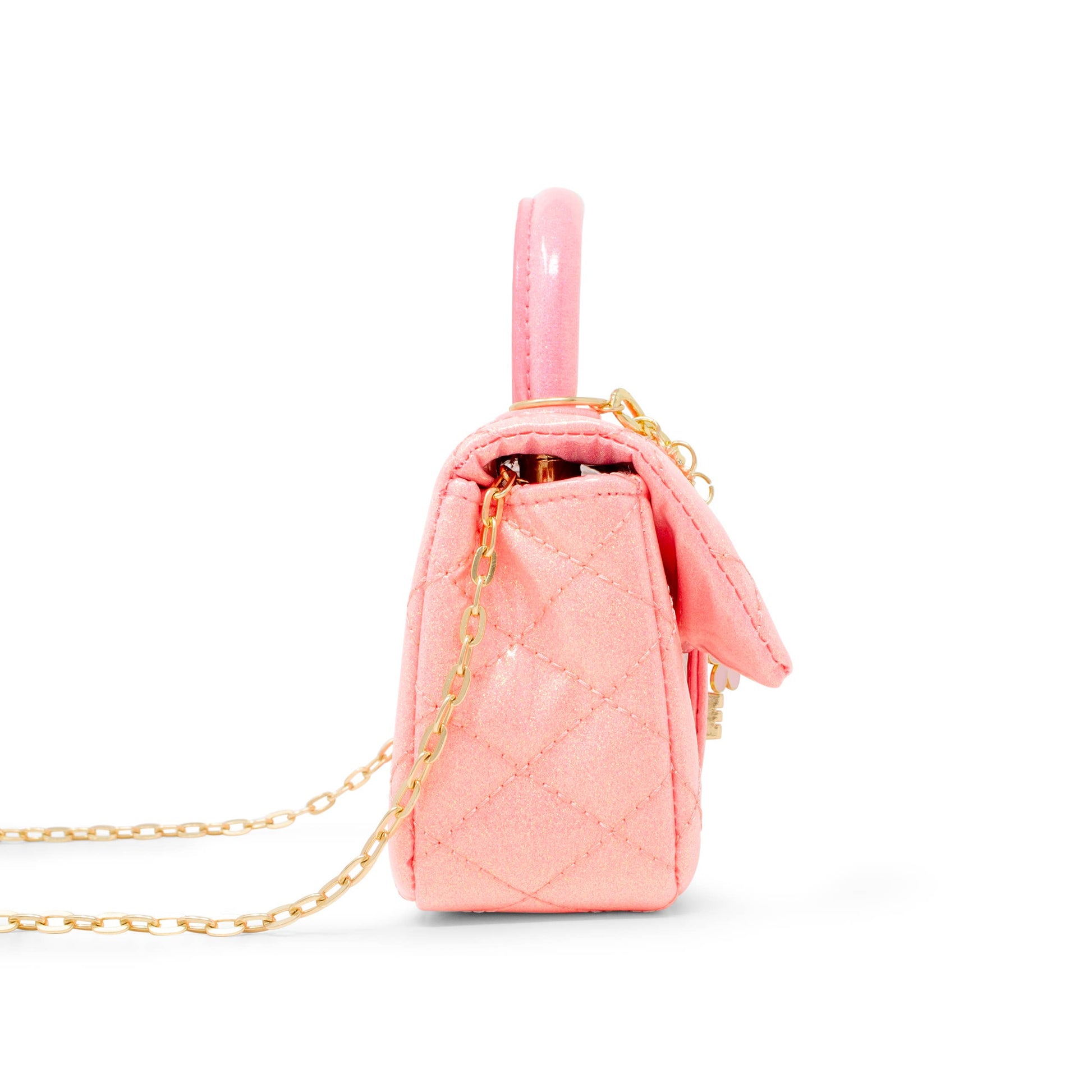 Add a pop of sparkle to any outfit with the Glimmer Glam Bag — the ultimate accessory for girls who love all things fabulous. This classic structured handbag features a glittery quilted texture, a top handle wrapped in shimmer, and a gold turn-lock closure for a touch of timeless charm.