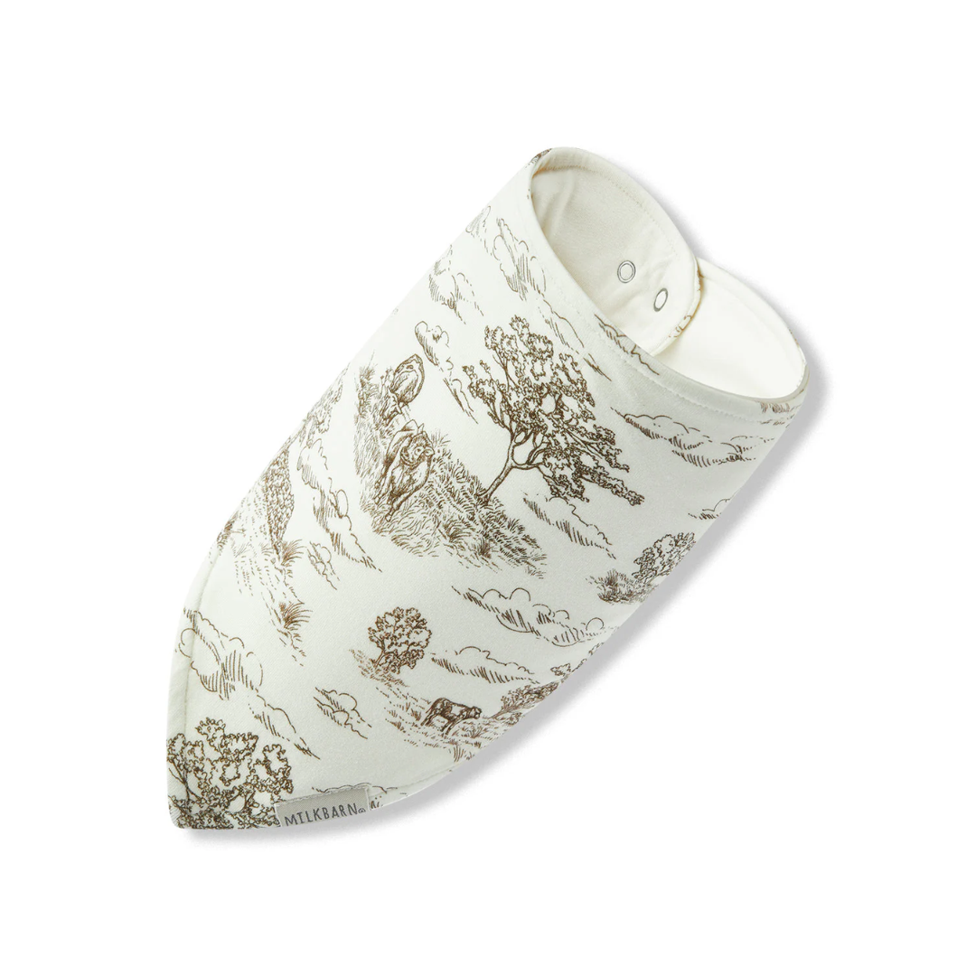 Snack time in the high chair or storytelling at the park, elevate and transform your little one’s outfit with our signature, all-season Country Toile Luxe Stretch Kerchief Bib. We craft every generously sized Kerchief Bib (also known as a Bandana Bib) with three layers of extra soft fabric. Added details include a contrasting backing and adjustable ring-snap closures.