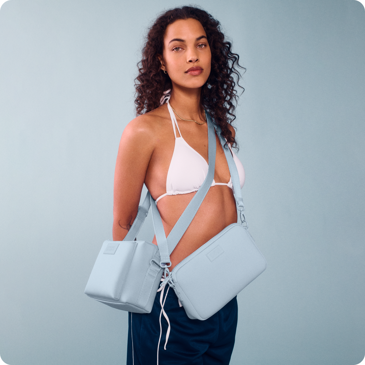 Cross your body and hope to Micah. But honestly, you might not even realize you're wearing Micah because its literally the lightest crossbody ever. Made from Neoprene, not only will this bag lighten your load even more, but it resists water like a champ. Our signature key leash prevents any unwanted games of hide-and-seek with your keys – a game they love but one youd rather not play. Micahs also a great companion for day adventures and casual nights out because it holds pretty much all the essentials. Unless you consider your pet elephant an essential, in which case, touché.