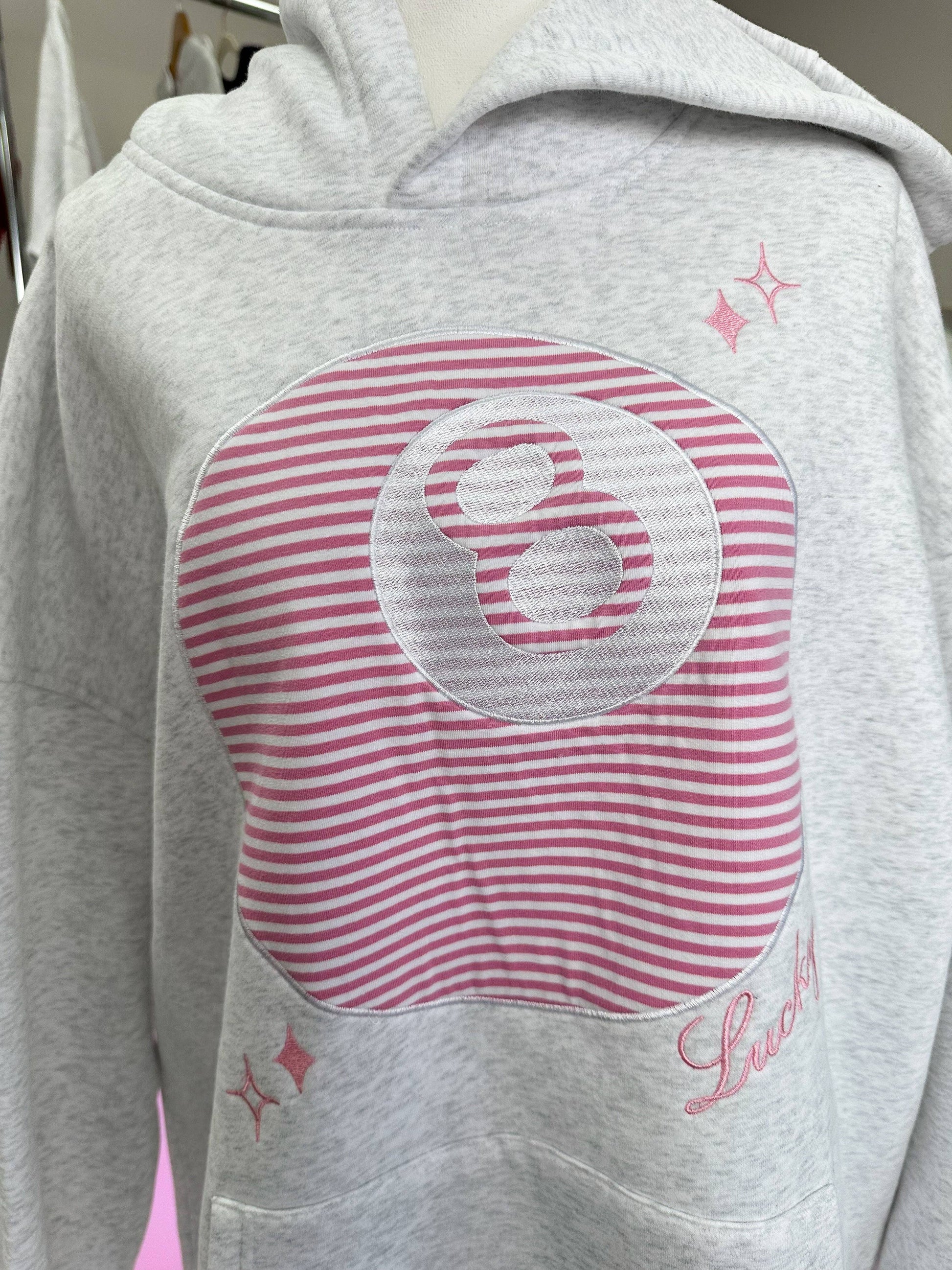 Unleash your inner fortune teller with our 8 Ball Embroider Hoodie in Heather Gray! Featuring a playful pink embroidered 8 ball on a soft heather gray hoodie, this piece will add a touch of fun to your wardrobe. Perfect for casual hangs or cozy nights in.